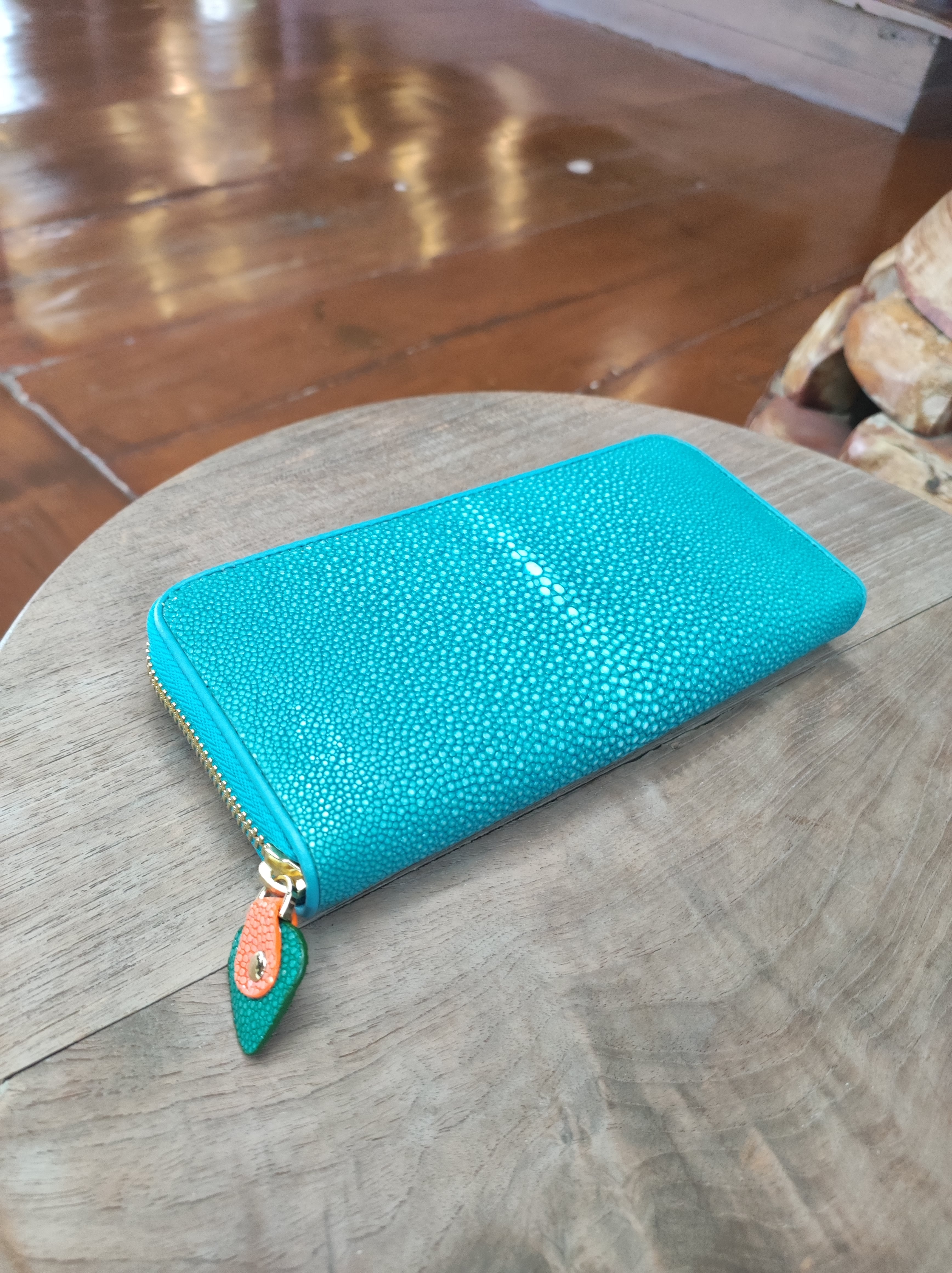孔雀の羽のような美しさと、エイ革の輝きで、